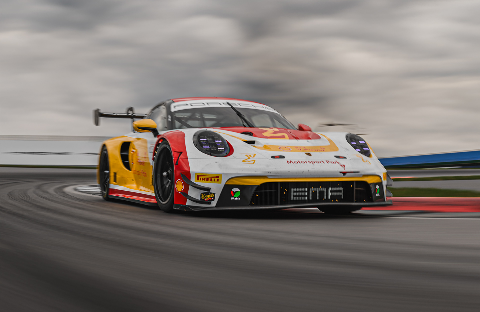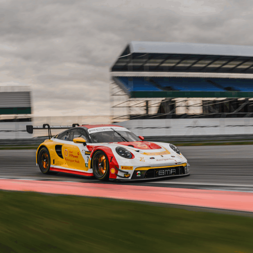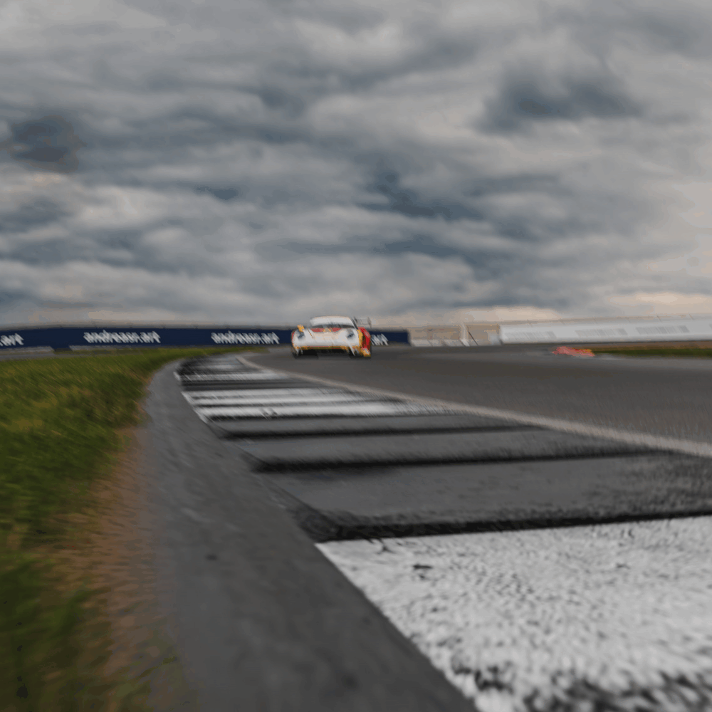 I rendered this Shell Porsche 911 GT3 R pushing hard around Silverstone, catching it from a few impossible angles you'd never get with a real camera. The car’s motion is raw, tires flexing, body leaning just enough to hint at the speed without turning it into a blur. You feel the strain in the suspension and the grip fighting the G-forces. It’s not cinematic perfection, it’s closer to how speed actually feels: fast, loud, and a little unhinged.